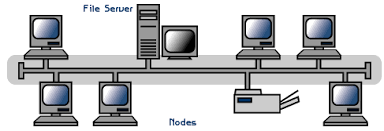 Jaringan komputer dengan topologi linier biasa disebut dengan topologi linier bus, layout ini termasuk layout umum. Satu kabel utama menghubungkan tiap titik koneksi (komputer) yang dihubungkan dengan konektor yang disebut dengan T Connector dan pada ujungnya harus diakhiri dengan sebuah terminator. Konektor yang digunakan bertipe BNC (British Naval Connector), sebenarnya BNC adalah nama konektor bukan nama kabelnya, kabel yang digunakan adalah RG 58 (Kabel Coaxial Thinnet). Installasi dari topologi linier bus ini sangat sederhana dan murah tetapi maksimal terdiri dari 5-7 Komputer.